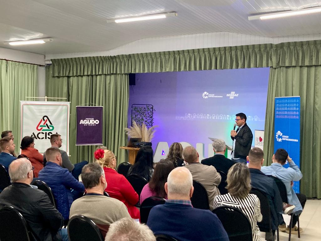 Agudo é o 86º município gaúcho a integrar o Programa Cidade Empreendedora, do Sebrae RS. O lançamento da parceria aconteceu na noite da última quarta-feira (30/08), no auditório da Associação Comercial, Industrial e de Serviços de Agudo (Acisa). A partir de agora, a Administração Municipal contará com a consultoria do Sebrae para focar no desenvolvimento dos eixos Gestão Municipal, Compras Governamentais, Desburocratização e Educação Empreendedora.